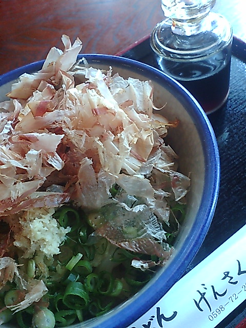 白い看板に、黒い墨で描かれた「げんさく」の文字。 くじまぐネットの口コミで以前から気になっていたものの 住所、電話番号共に不明! で・・・行けずにいました がっ 発見!! 本格讃岐うどんの楽しめるお店でした。 ¥550で、讃岐うどん独特の食べ方『こんぴら醤油』を味わえます。 うどんの上に鰹節、ネギ、油粕がこんもり盛られたところに ただ出汁醤油をかけて食べるシンプルさ・・・ うましっっ!!!! 「げんさくさん?」なのか、ご主人のこだわりが感じれます(笑) 次は釜バターうどんなるものを食べてみたい! 三重県度会郡大紀町大内山川口1041-1(携帯地図) (地図) 0598-72-2287 定休日?? 駐車場有 |